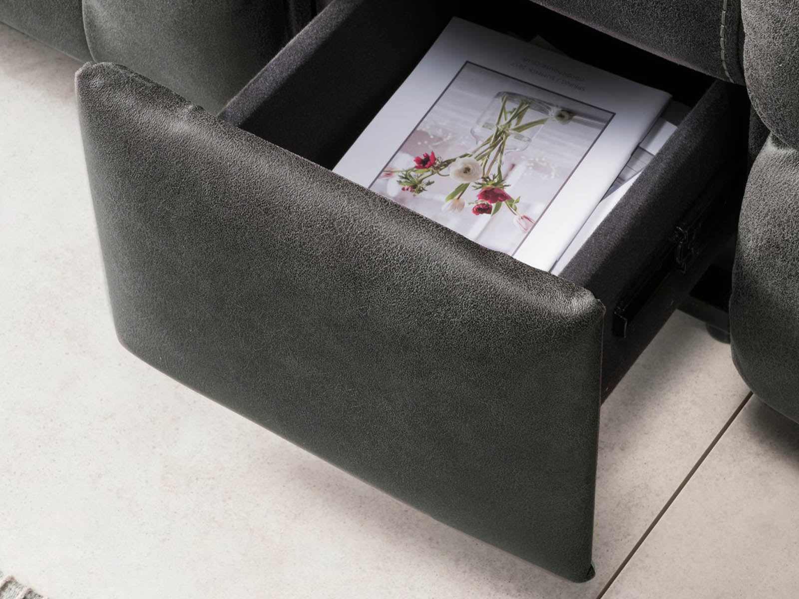 Maximize your living space with our innovative sofa featuring hidden storage, seamlessly blending style and practicality.